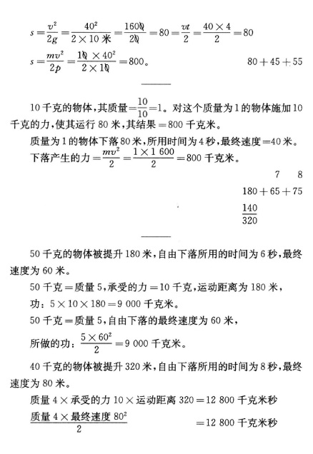 290 《10千克的物体被提升80米》、《质量为4的物体》、《1)v=ct》这三篇札记是《运动的量度——功》(见本卷第618—632页)一文的准备材料,有关算式意在推导物体动能应由