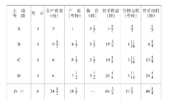 这是B级土地上还没有投入那个只提供1夸特的3(1/2)镑新投资以前的情况。有了这个投资以后,情况如下: