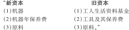 “生产网布的第一批机器很昂贵,最初的售价是1 000镑到1 200镑[或1 300镑]。这些机器的所有主认为,机器生产的产品是多些,但是因为工人的劳动时间限定为8小时,所以他们在产品的价格方面不可能同旧的生产方式竞争。这个缺点是由于最初购置机器时花费了大量资本造成的。但是,工厂主很快就发现,只要使用原来的同一资本,而稍微增加一点流动资金,他们就能使这些机器一昼夜工作24小时。”(拜比吉[《论机器和工厂的节约》1833年巴黎版]第279页)
